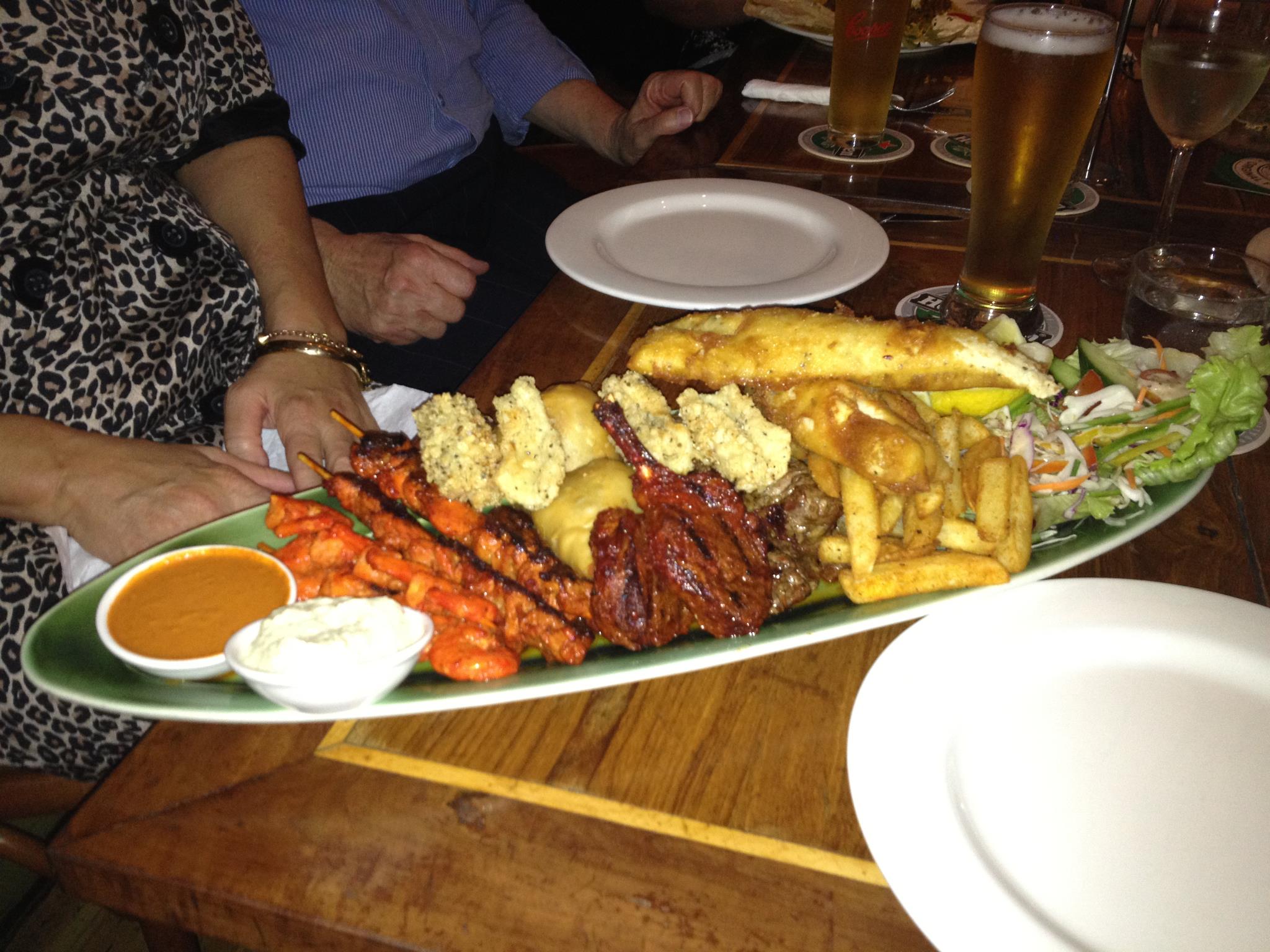 On this occasion, a friend and I decided to get the Punjab Platter just to taste a bit of everything off the menu. The platter came with Salt and Pepper Squid, Samosas, Tamil Tigers, Ghurkers, Battered Whiting, Beef Kebabs, and Tandoori Lamb Cutlets. Essentially a mish mash of western and Indian food. The squid and whiting were fresh and perfectly cooked. The kebabs were over cooked and hard to eat. The lamb cutlets were OK but I’ve had better.