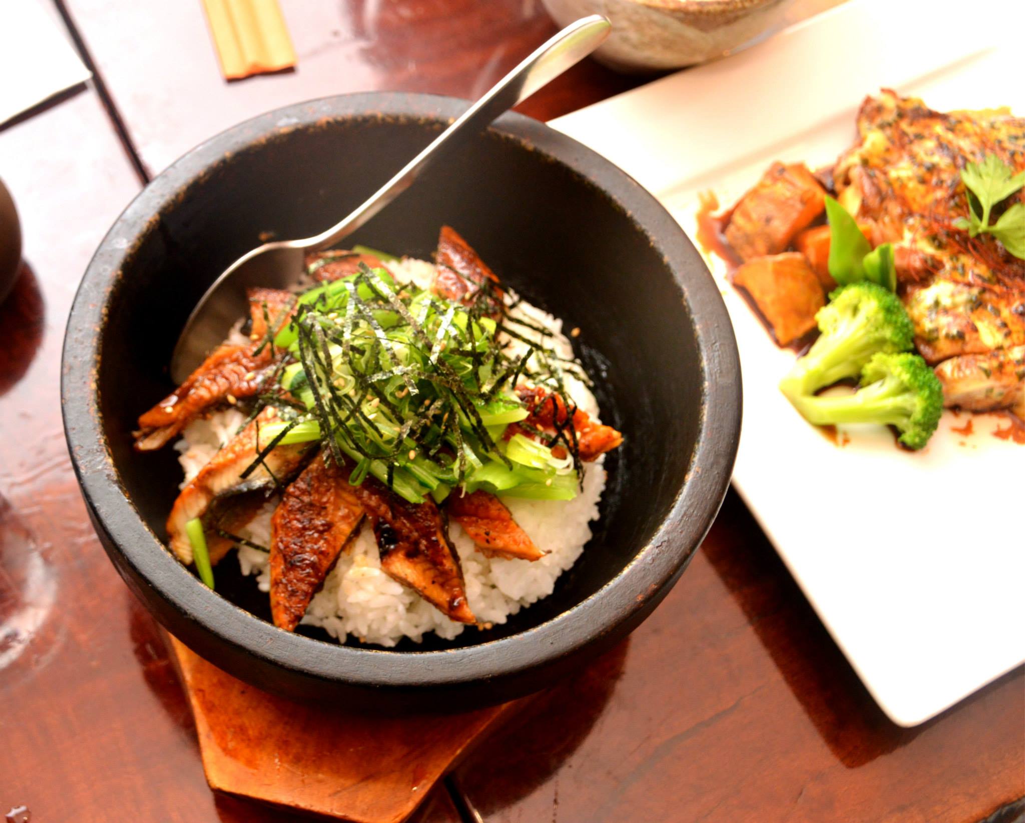 Ishiyaki Una Don is essentially grilled eel on rice which is topped off with spinach, spring onion and sesame. The eel is glazed with a soy based sauce and then caramelised over the grill. The eel has a firm exterior with a soft delicate centre, and works well with the perfectly cooked rice.