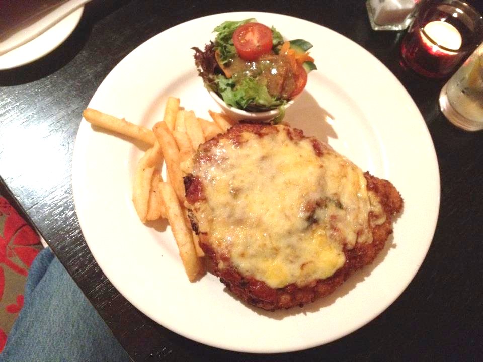 The staff were friendly and inviting, and the food didn’t take too long to arrive. Tonight I ordered the Chicken Parmi. It’s not the biggest schnitzel that I’ve had but it had a good thickness to it. The chicken was perfectly cooked, however, I felt the parmigiana topping could have been better. The tomato based topping was spread thinly over the schnitzel and it didn’t have that rich texture that I am used to. The amount of mozzarella on the schnitzel was sufficient. The bowl of salad provided was a bit small and my chips were squashed under the weight of the schnitzel. The chips were perfectly cooked although they were slightly over salted.