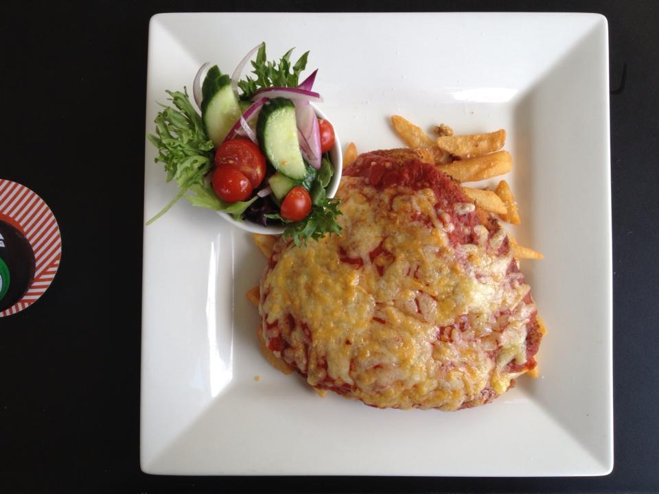 The chicken schnitzel was of an adequate size and thickness, and was perfectly cooked. The Napoletana sauce had adequate coverage over the schnitzel but was slightly sour and had bits of onion in it. The sauce was reminiscent of the pre-made red pasta sauce you’d get out of a jar. While there was an adequate amount of mozzarella cheese, it appeared as though they had used the pre-grated cheese you get from the supermarkets.