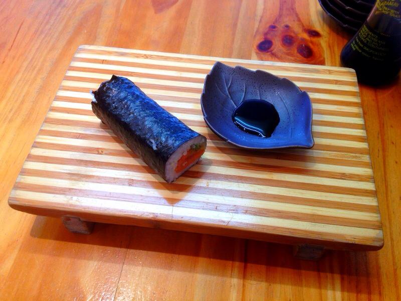 The rice was a bit dry, while the salmon was smoked salmon taken out of a packet. The avocado was ripe and worked well with the salmon. The seaweed on my sushi was a bit torn in the middle and around the edges. This indicates that poor quality seaweed sheets were used and the knife used to cut the sushi at its ends wasn’t sharp enough.