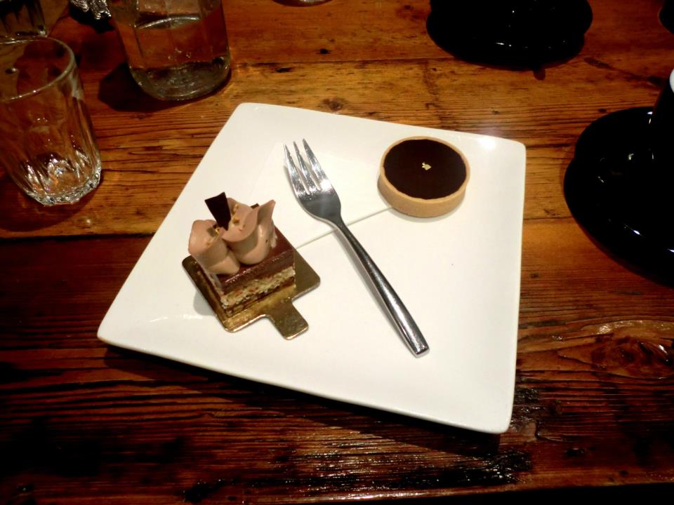 Aiming for a sugar high, we ordered two desserts, a beverage and one of their hand made chocolates. For me, there were two highlights; the hot chocolate and the salted caramel tart.