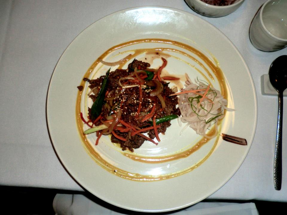 Tonight, I ordered the Beef Bulgogi. The meal arrived 15 minutes after ordering and all meals arrived at the same time. My dish was beautifully presented and it actually looked too good to eat. The slices of grain rib eye steak were tender, lean and perfectly marinated. The combination of soy sauce, sesame oil and sugar were just right. The vegetables were fresh and crisp, and the dish as a whole was well balanced and full of flavour. Possibly the best Beef Bulgogi I’ve ever had!