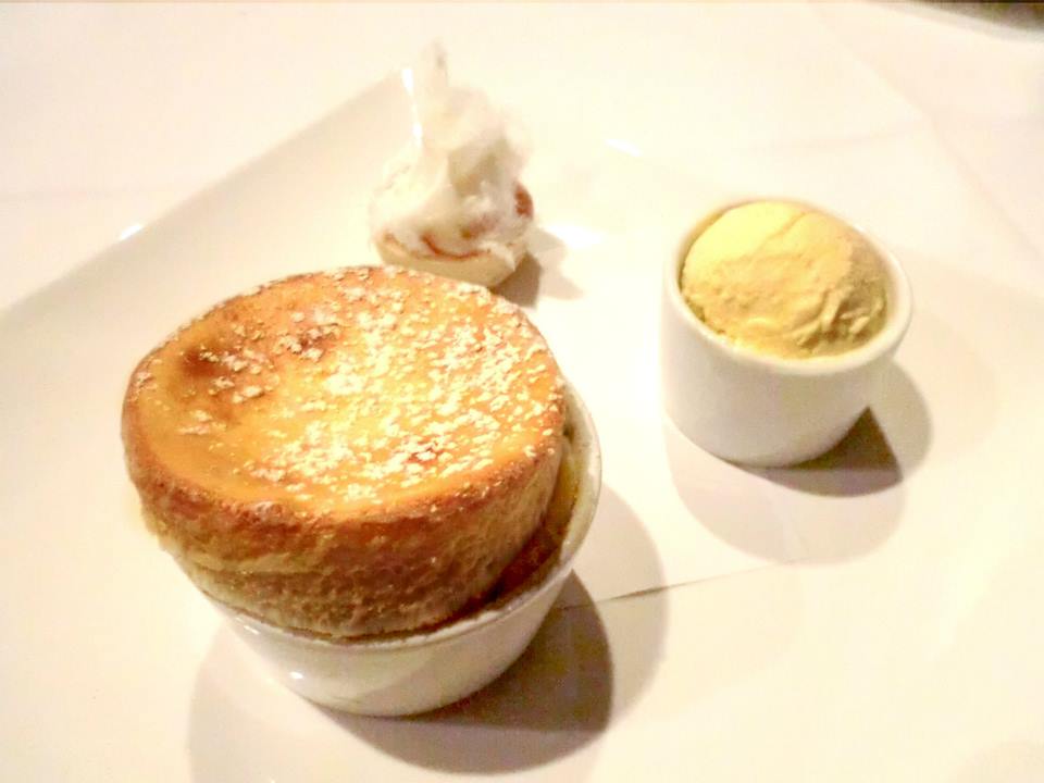 CITRUS PLATE – We had to wait 30 minutes for the souffle to be cooked as indicated on their menu. When it came out, the souffle had not risen evenly, although the top of it was a nice golden colour. The souffle was soft and fluffy in the middle, and similar to eating a moist pudding. It was subtle in sweetness and you could see the bits of passion fruit laying at the bottom. The tartlet and the ice cream were nice, but the souffle was the star of the show. The dessert wasn’t too heavy which was good.