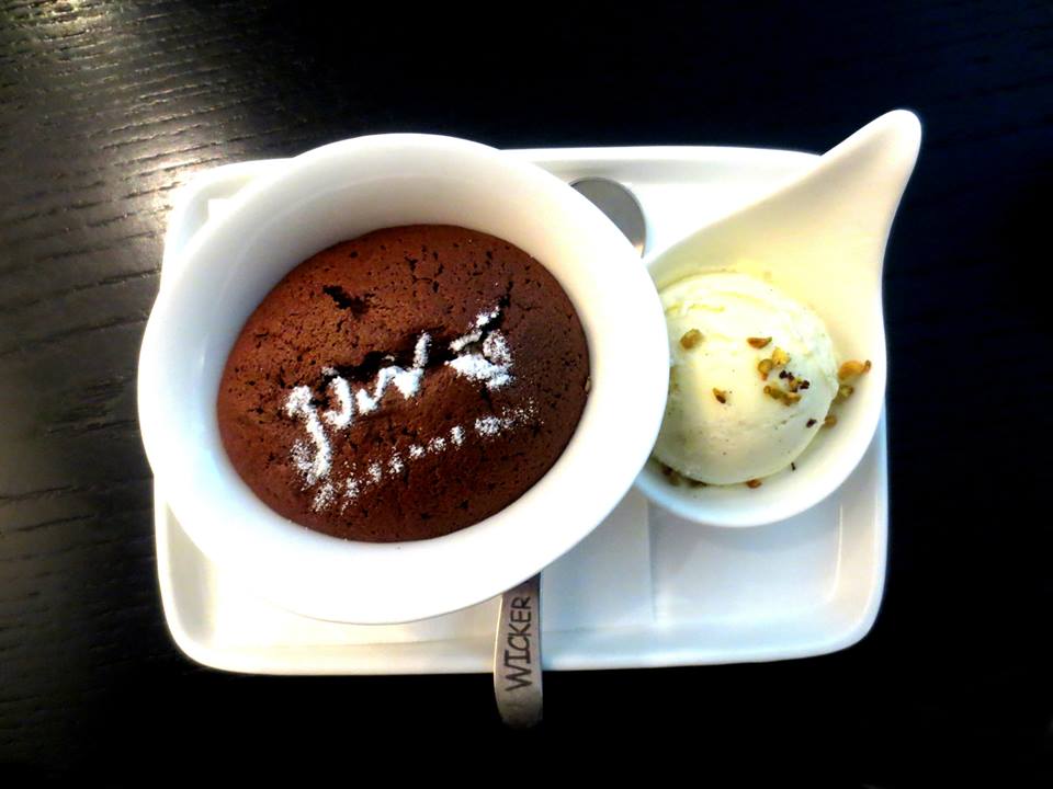 Tonight, I ordered the Jin Signature Fondant. While the picture of my fondant doesn’t look as good as Penny’s, I must say it was really good. The texture was so rich and delicate, and the chocolate sauce hiding in the middle was a pleasant surprise. If you could describe chocolate heaven, this would be it. The accompanying ice cream wasn’t too sweet either and was a perfect companion to the fondant. For the $12.50 price tag, I felt the fondant could have been a bit bigger, but as I’m watching my weight, I let that one pass.