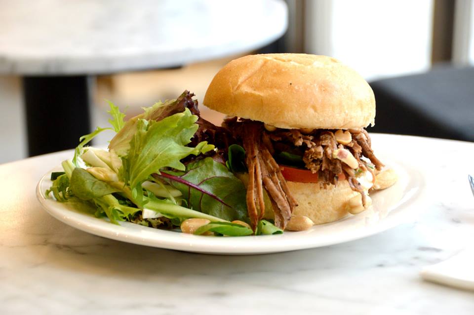 The burger had a distinct Asian influence to it. The crunchy texture reminded me of a Vietnamese dish that I have with rice noodles.