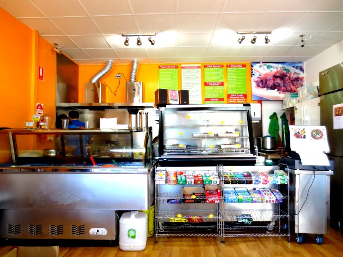 I’ve driven past this store on many occasions and was intrigued to find out what they’re all about. The name 100 Food Station doesn’t reflect how many items that are on their menu but rather the numeric location of their store. The decor is neat and basic with the highlight being their unique solid timber furnishings and their bright orange walls. The clientele are primarily take away customers as there is only enough seating for 8.