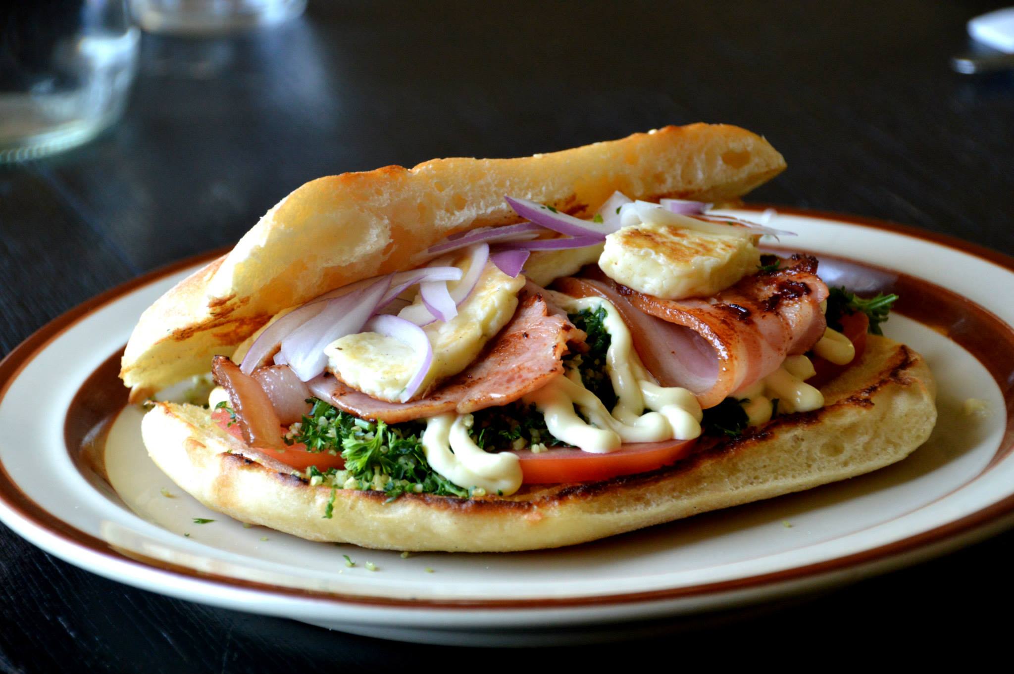 For lunch, I ordered the BTT Deluxe. This consists of bacon, tabouleh, fried haloumi, tomato and Spanish onion served on Turkish bread. By itself, the bacon and fried haloumi would have been too salty but it was well neutralised by the tabouli, Spanish onion and Turkish bread. I felt the bacon could have been fried longer, either that or they could have trimmed the fat off. The Spanish onion wasn’t too overpowering and the combination of ingredients worked well. The Turkish bread was buttered on both sides and lightly toasted. It was firm enough to hold all the ingredients and easy to bite through.