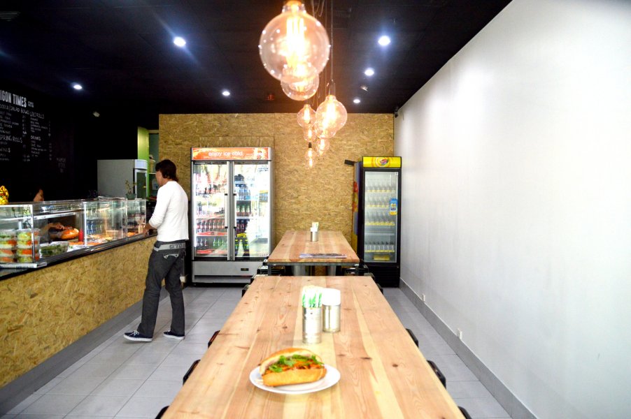 When it comes to street food, one of the new kids on the block is The Saigon Times. Located on the north western corner of Victoria Square, this eatery replaces the former Yumalicious Vietnamese take away store with something that is more modernised. The name of the store is based on a newspaper which is represented by the prominent use of black and white in the interior. Seating is in the form of communal tables and the low hanging light fittings gives this place an industrial warehouse feel.