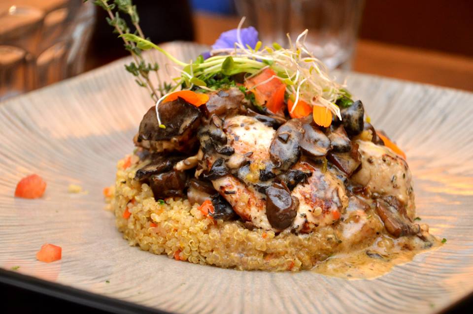 My friend had the Chicken Breast marinated in olive oil, garlic and thyme. The chicken is then sliced and pan seared, and then cooked in a creamy port and mushroom sauce and served with a vegetable quinoa pilaf. The same friend that ordered the entree was also happy with her main.
