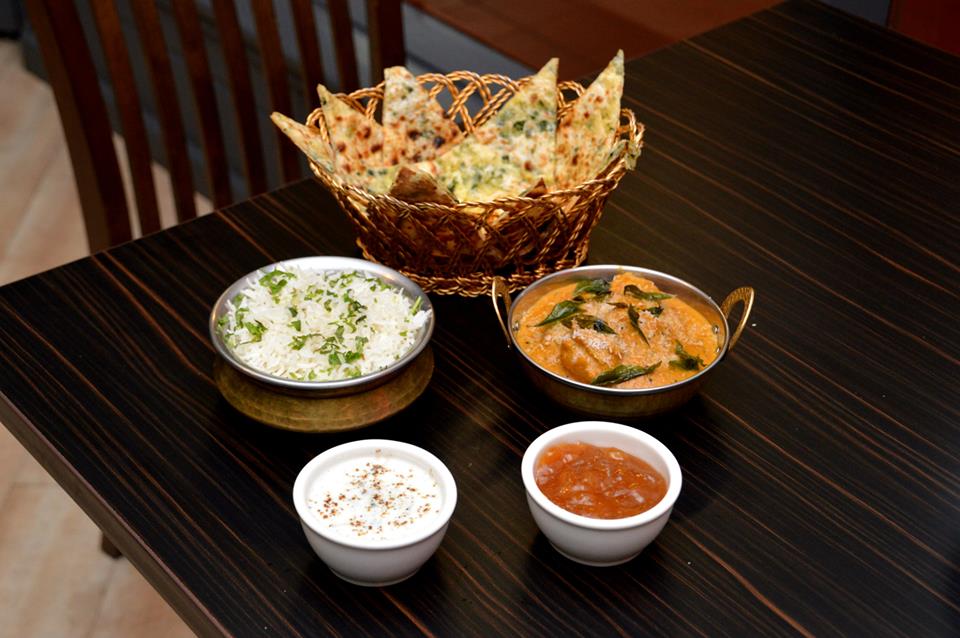 For mains, I ordered their specialty, the Chicken Chettinad with Steamed Rice and Spinach and Cheese Naan. There were also two accompaniments, the Cucumber Raita and Mango Chutney.