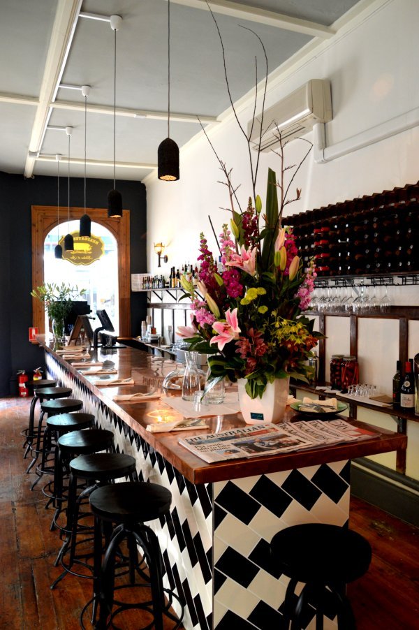 The highlight of this place is the gorgeous modern French inspired bar. The unique copper benchtop is sleek, stylish and acts as a centre piece in the room. The use of black, whites and browns are prominent, and the diagonal tiling along the island of the bar adds a touch of elegance.