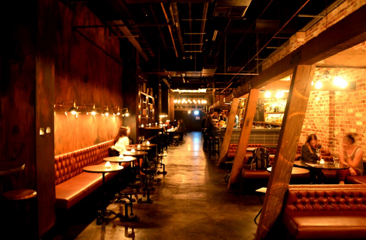 The beautiful timber furnishings complement the leather bench seating. The individual hooded light fittings over each table combined with small candles really set the mood for a relaxed drink on a Wednesday night.