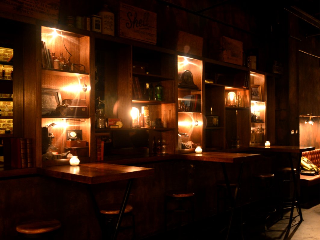 The interior design is based on a speakeasy (an illegal American bar that was quite prominent in the 1920’s and 30’s during the Prohibition era) with exposed brickwork and pipes, timber beams, hooded light fittings and Chesterfield backed seating.