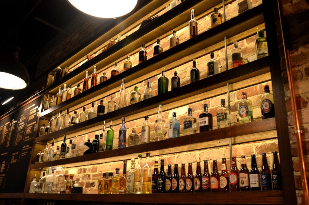 The lovely tall shelving behind the bar showcases the locally produced spirits, and craft beer and cider. They also do boutique wines, but who wants to see wine bottles on a shelf? Wine bottles all look the same.