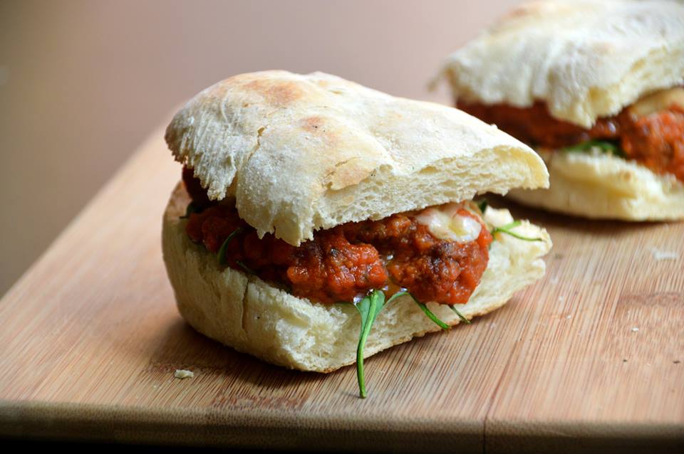 The meatballs were probably once round but then flattened so that they don’t drop out of the bread. The meatballs were juicy and succulent and full of rich tomato flavour. The sauce had plenty of depth and would have went well with any sort of pasta. The grana padano was beautifully melted over the meatballs. It was slightly salty with a subtle nutty flavour that provided good balance. The spinach was fresh and crisp, and added a slight crunch to the texture. The ciabatta bread was light toasted and firm enough to hold all the ingredients in.
