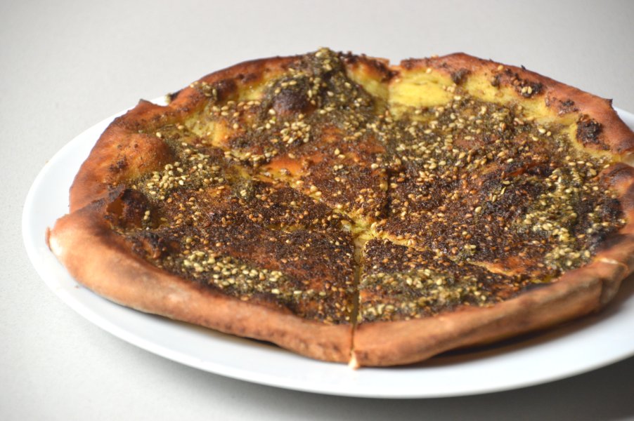 The pizza was 9 inches in diameter and baked to a dark golden brown. It was topped with a middle eastern herb mixture that was nicely charred along with roasted sesame seeds. The mozzarella cheese was well distributed and provided a nice gooey texture. The base had a nice thin consistency and wasn’t too oily.