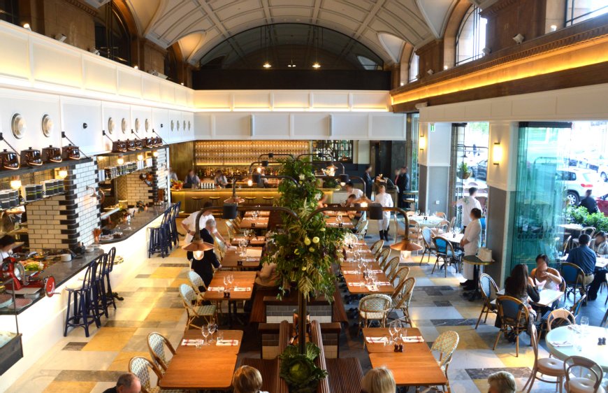 With a seating capacity of 180, customers have the option of dining alfresco, in private dining areas, or up close where the kitchen is, at the Chef’s Table. The main dining area is a large open space with magnificent high ceilings. The black and white glazed tiles and the use of timber furnishings are cohesive with the historical character of the building. The use of low level plants in the alfresco area creates a space that is more inviting and has been cleverly designed to draw customers in.