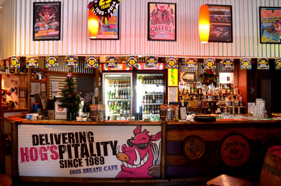 Every Hogs Breath store has that old outback style that we’ve become accustomed to. There is a combination of bench seating and normal tables in front of the bar area which leads to the balcony. Additional seating is available at the back of the bar.