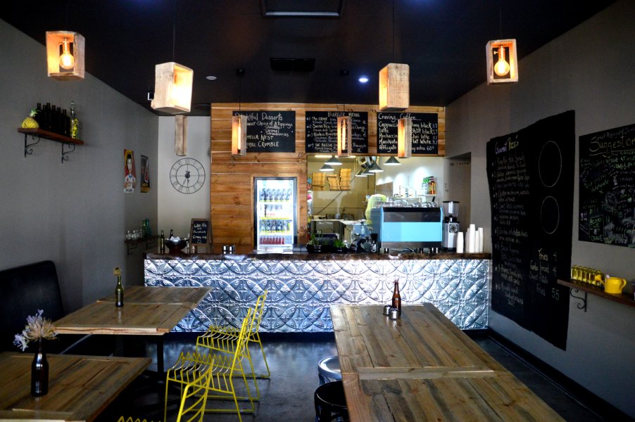 The decor at this place is very cool and funky, with good use of timber throughout. The pressed metal and African mahogany bench top at the front counter area is one of it’s unique features, and whole fit out is tastefully done. The place seats over 30 if you include the outdoor seating.
