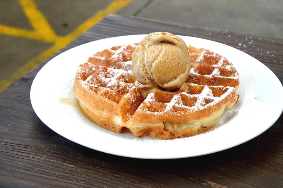 Today, I had the vegan and gluten free Belgian Waffles with Maple Syrup and Espresso Gelato. The waffles were freshly made and piping hot. The exterior was firm and crunchy, and the inside was light and airy. The Espresso Gelato was smooth and delicate with a coffee flavour. The strong coffee taste was well balanced by the sweetness of the syrup and icing sugar.