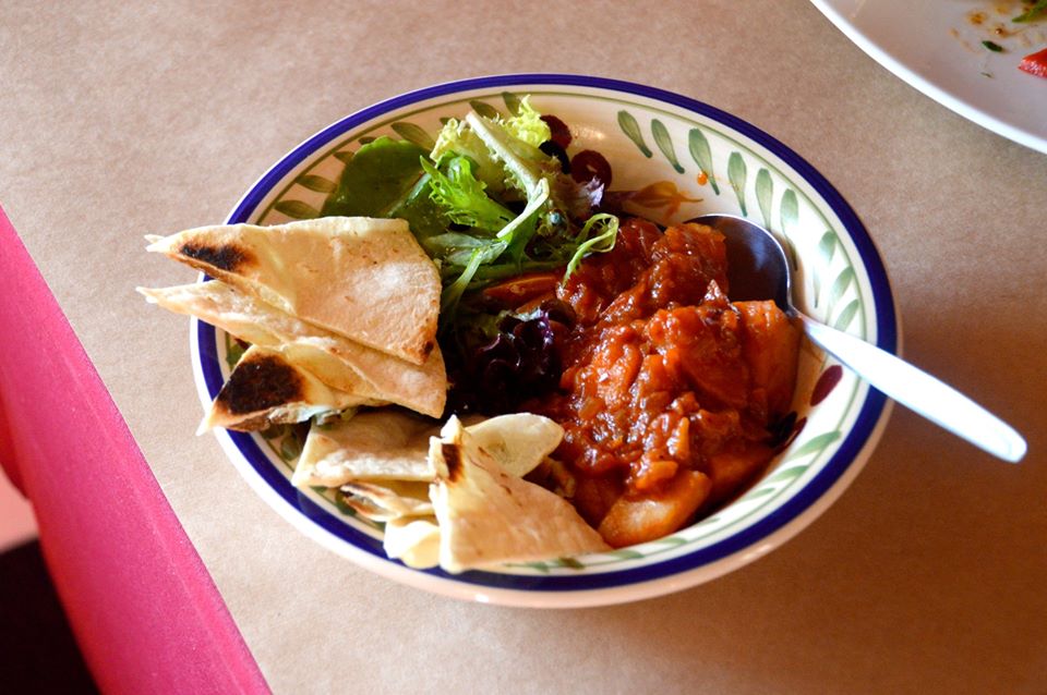 The Patatas Bravas is crispy fried potatoes with a spicy tomato salsa. The potatoes in this dish weren’t even crispy, in fact, some were slightly undercooked. The salad from the last two tapas dishes made another appearance, and the tomato salsa from the first tapas dish was mixed in with the potatoes.