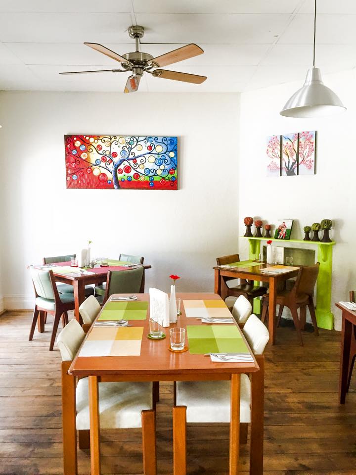 Some of the vegan places that I have been to have been like walking into a hippy commune. The upstairs dining section is far from that and is tastefully decorated. The coloured place mats and artwork along the walls give this place a very homey feel. There is plenty of natural light flowing through making the space light and airy.