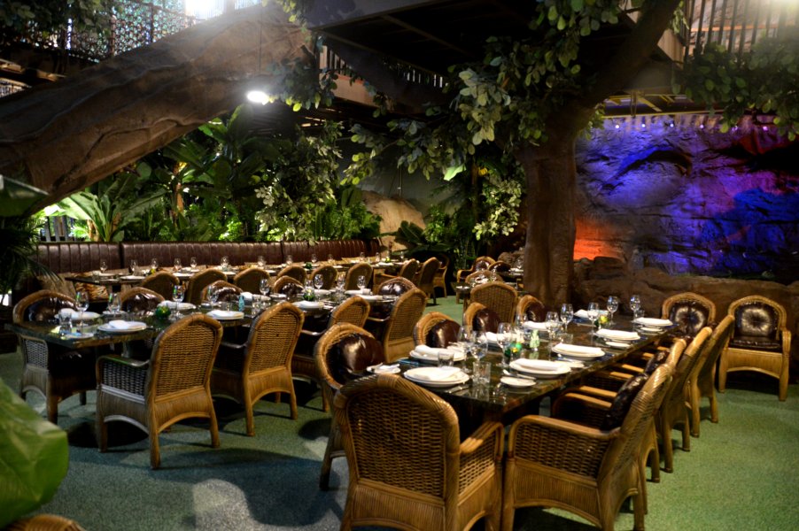 The Jungle specialises in Churrasco BBQ, where cuts of meat are placed on swords and then cooked over charcoal. The meat is brought over to your table and either carved or taken off the sword. When dining at The Jungle, the entire table must either have a la carte, or one of the three churrasco packages. With one, two or three course packages, that all include continuous swords of meat, all members on the table must have the same churrasco package.