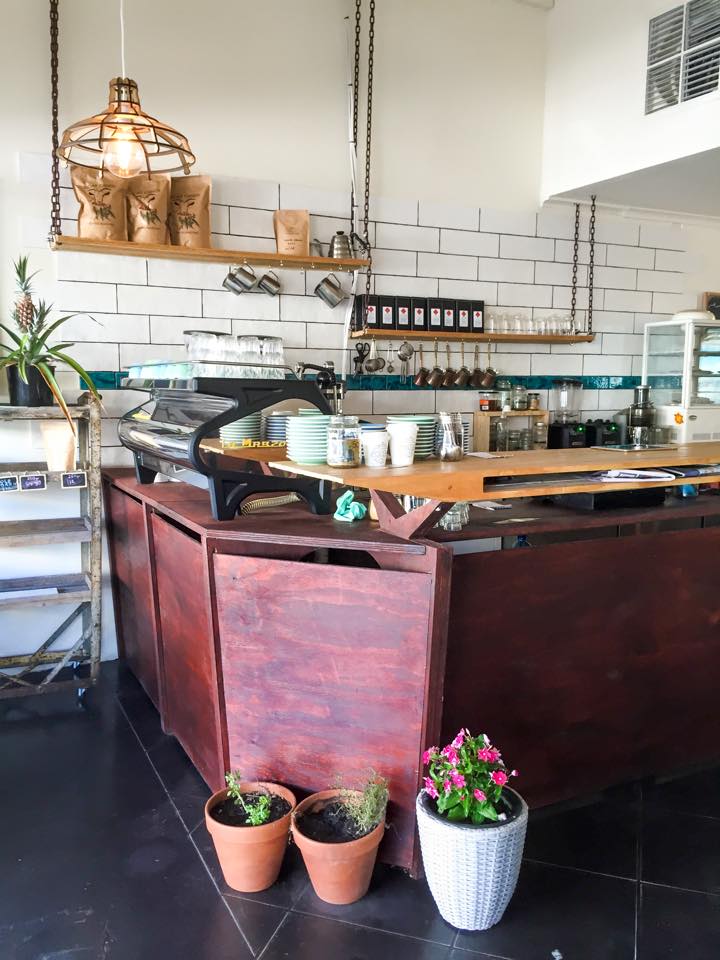 The cafe is not overly huge, with the bar area to one side as you enter, and a small open kitchen area towards the middle of the room. The space is efficiently used with seating along the windows and a communal table in front of the bar area. The use of glass right up to the top maximises the amount of natural light that flows through.