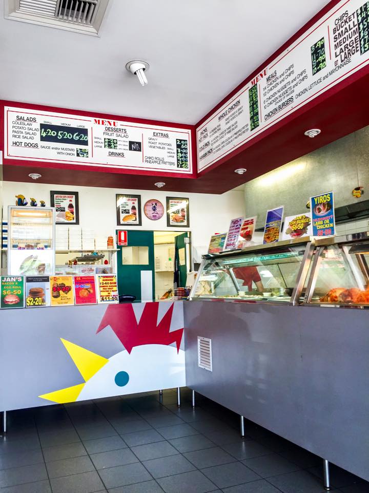Jan’s Fish and Chickery is located within a small shopping complex on the corner of Diagonal Road and Cliff Street in Glenelg East. Their main offerings are roast chicken, fish, burgers and salads, among other snacks.