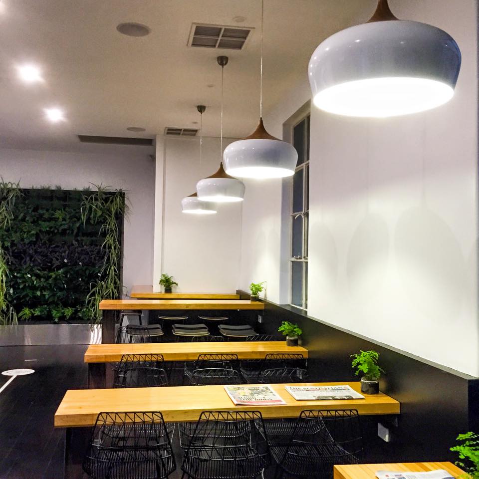 The decor is modern and stylish with a large counter area running down one side of the room. The green wall garden is a great talking point and complements their offerings. There are a few dozen seats on the inside and a few more out on the pavement. Located on a nice corner position, this place gets a fair amount of natural light during the day.