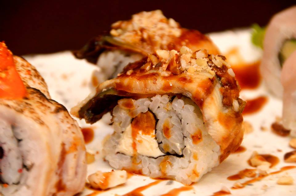 Cream cheese is a commonly used ingredient in fusion sushi with it’s thick creamy texture. In this sushi, it works a charm by harmonising the smokey flavours of the eel, the natural sweetness of the soft delicate pureed pumpkin and the crunchy texture of the nuts.