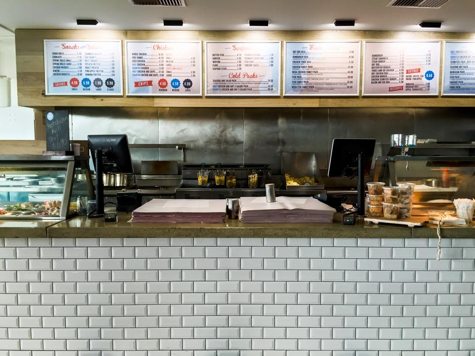 Seaview Chicken and Fish is not your typical chicken or fish and chip shop. The interior is modern with the trendy white tiling across the front counter area, the communal bench and seating along the window.