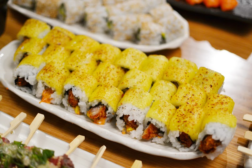 The Aburi Cheese Roll is a little different to your average Aburi Sushi roll because this one is topped with seared cheese. This sushi is a bit of an acquired taste and may be a bit strange for some, however, it’s best to keep an open mind when it comes to new ingredient combinations. The crumbed chicken was tender, crispy and full of flavour, and the mango added a lovely natural sweetness.