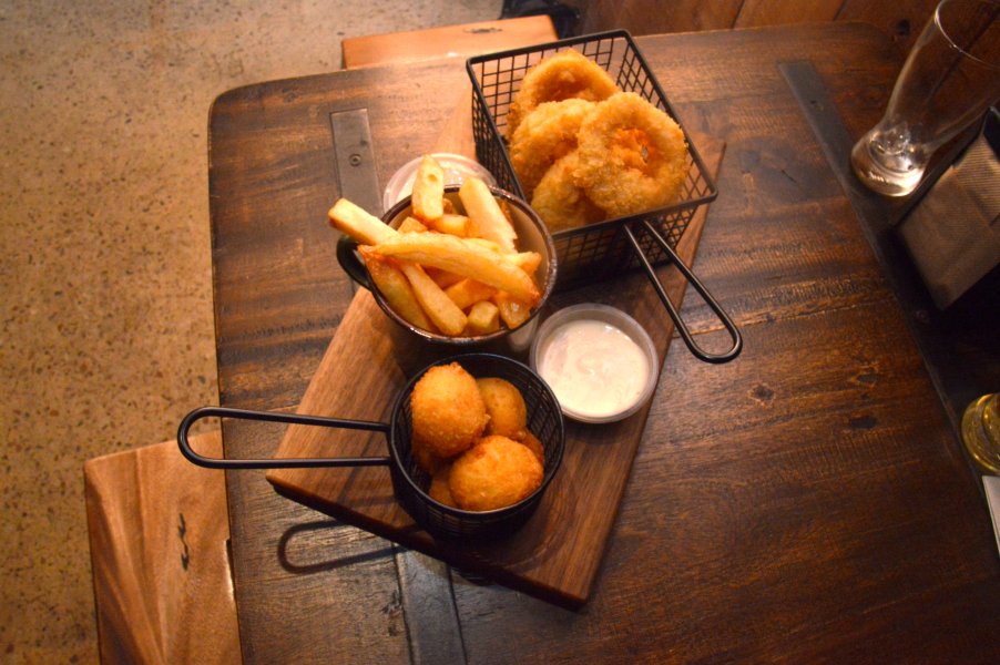 All guests were provided with their full range of sides; Mozzarella and Bacon Tater Totts, Hand Cut Chips and Onion Rings. The Tater Totts were firm and crispy on the outside with a soft and delicate mash potato like centre. Quite similarly, the Hand Cut Chips had a crunchy exterior with a light and fluffy centre. The Onion Rings looked like they were covered in panko crumbs hiding multiple rings of finely sliced onion. Served with a creamy garlic aioli, this was the perfect way to start the evening.