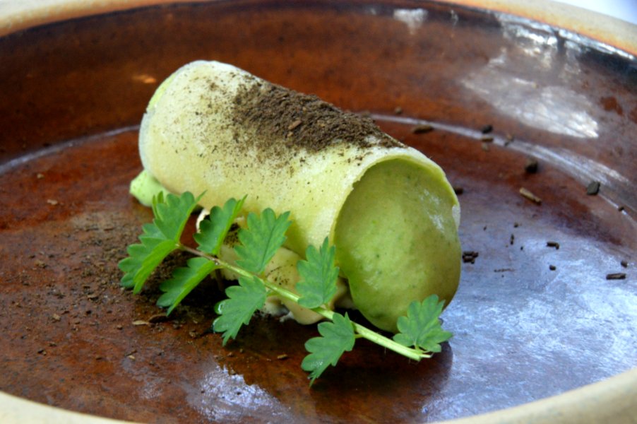 As a complimentary starter we were served the Amuse Bouche. Inside a soft delicate cylindrical shell were mashed up peas. The whole casing was sitting on top of a sauce that tasted like liquid bacon. The peas and bacon worked well together although the former was quite prominent throughout.