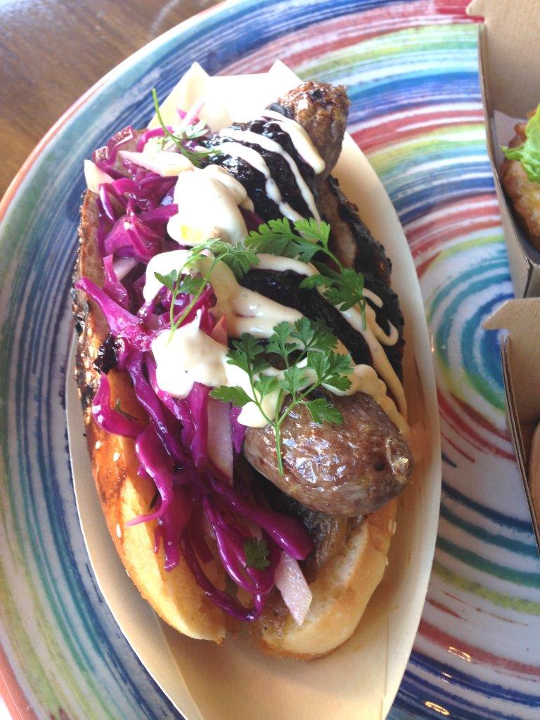 We start with a couple of snacks – firstly, the Deer Dog which was a really good meaty venison sausage served hotdog style. Being an avid ‘sausage-ophile’, I know a good sausage when I see it! We divided it into four so we could all have a taste.