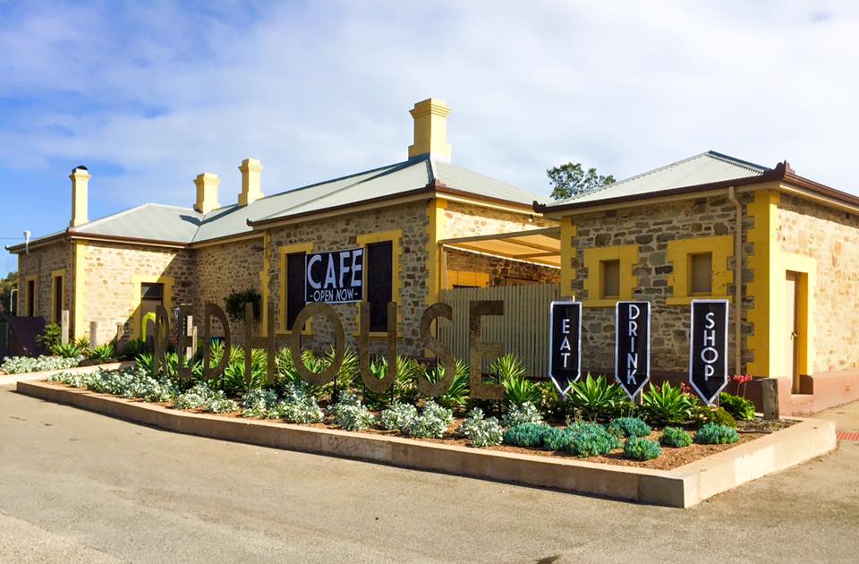 The Red House Shop and Cafe is located inside a heritage listed and previously disused railway station. It’s not only a cafe but also a vintage clothing shop, market and space for theatre and arts. The service counter is an old ticket office window and is surrounded by the main dining area, bench seating along a hallway and an outdoor space.
