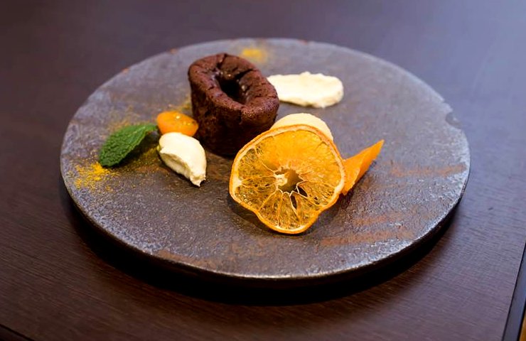 The Chocolate Fondant Cake with White Chocolate Yuzu Ganache was garnished with mandarin segments and an orange and mandarin sorbet. The key to enjoying the dessert is to mix all the ingredients together. The fondant cake was soft and moist with a gooey chocolatey filling. It was complimented by the subtle sweetness of the ganache and sorbet. The mandarin segments provided an overall balance by making the dessert more tart.