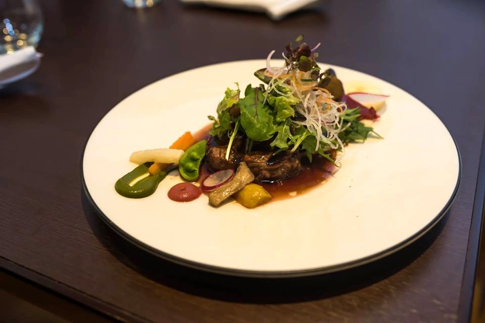 The Roasted Black Angus Beef Fillet was served with a mushroom and potato puree, seasonal salad and vegetables with a wasabi dressing and cream sauce.