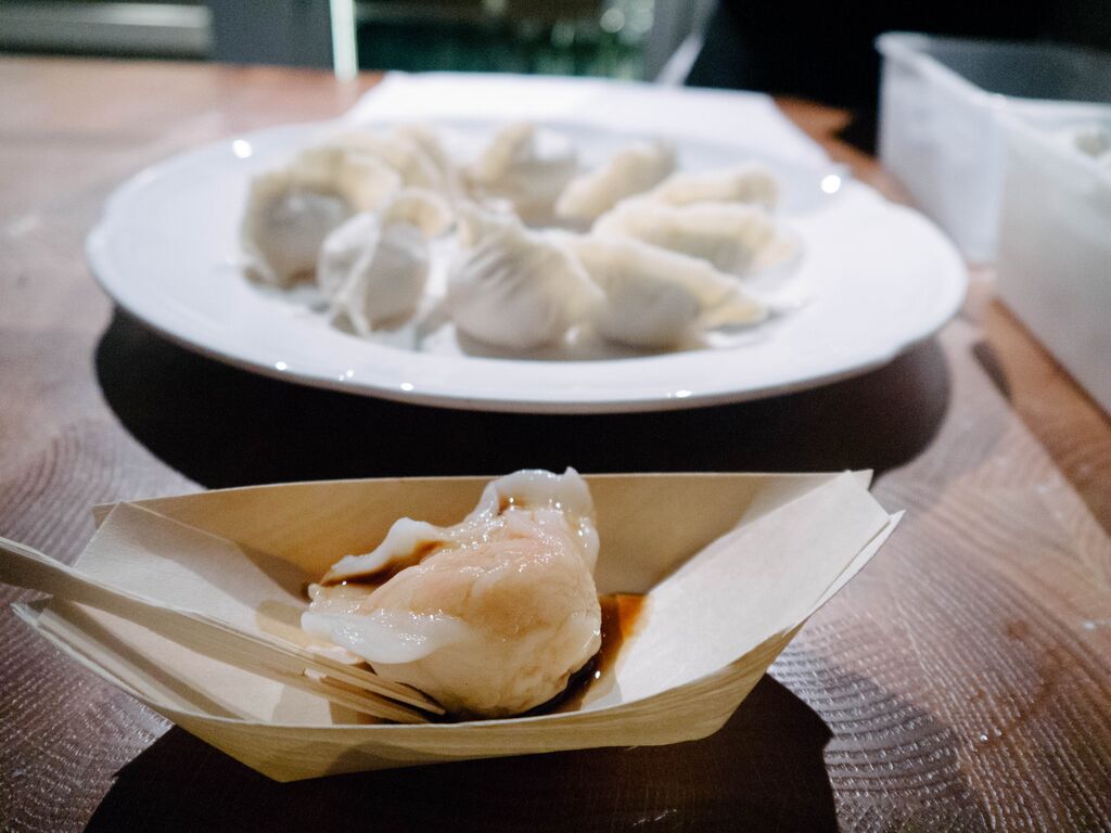 Besides that, there were two huge whole roast suckling pig being served on the night to celebrate the auspicious media launch of the Markets. The meat and crackling were served straight off the bone from the counter to the attenders. On top of that, there was a dumpling counter in which we can see the chef wrapping the dumplings. The prawn dumplings were then steamed and served. Last but not least, green tea ice cream was served as dessert to end the night.