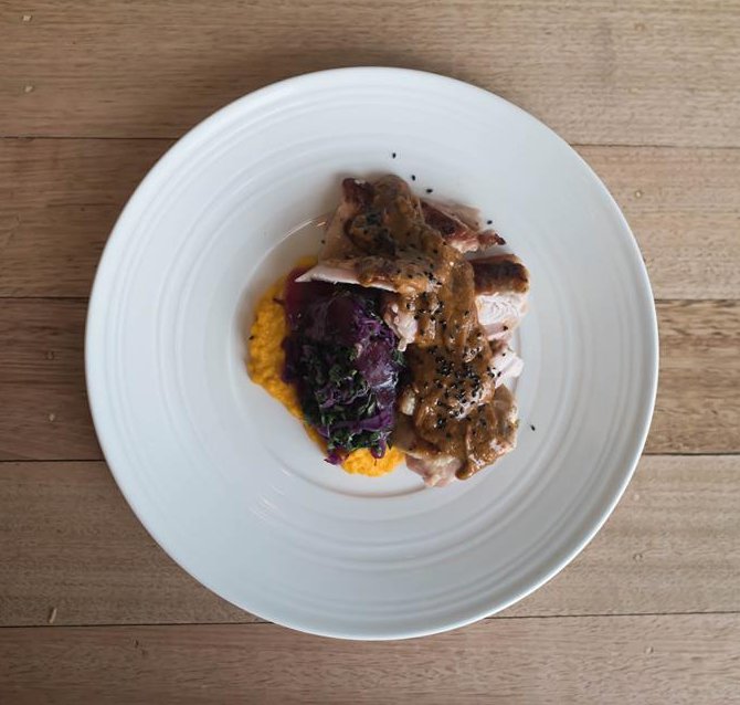 My friend had the Mister Lee and Jose which is a boneless chicken thigh seasoned with sesame and chillies on a carrot-orange puree, pickled red cabbage, spinach, cherry tomato and jamaica-habanero-honey salsa. The chicken was tender and succulent, and the thick brown sauce on top reminded me of a satay sauce. I was told there was a bit of kick to it, but I didn’t try enough to experience it.