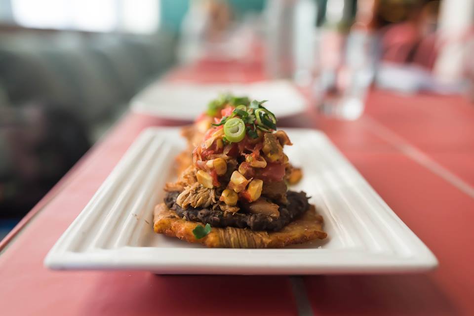 The next entree was the Tostones topped with chipotle chicken, refried beans, smoked corn salsa and pico de galla. The shredded chicken was well seasoned and the beans were soft and delicate. The pico de galla was light and refreshing, and the crunchiness of the corn was well complimented by the tostones.