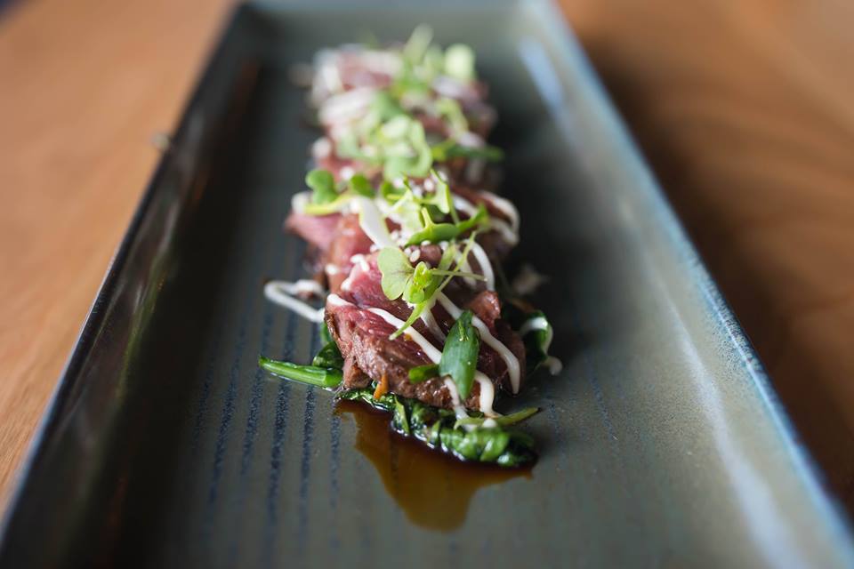 The next dish to arrive at our table was the Kangaroo Tataki with enoki mushrooms, warrigal greens and aioli. Whilst kangaroo isn’t a meat I would usually choose I am very glad that co-owner Seb suggested this dish. Tataki is a Japanese method of briefly searing meat or fish over a hot flame or pan. The kangaroo was tender and perfectly cooked. Everything about this dish worked so seamlessly together. If I ate this dish with my eyes closed I could have sworn that I was eating teriyaki beef at a five-star Japanese restaurant. This dish was absolutely delicious and by far the standout for me!
