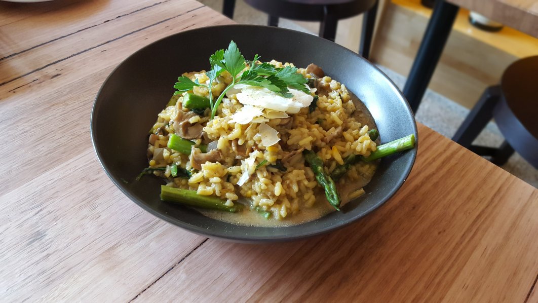 Given that we were time poor on the night, we opted to forgo entrées and jump straight to mains. I chose an authentic Italian dish, the Funghi Selvaticin, an Arborio rice risotto with sautéed wild mushrooms, saffron, onions, parsley, baby spinach, asparagus, garlic and cracked black pepper, garnished with Reggiano cheese. The dish was beautifully presented for a risotto, which can sometimes be unappealing visually. The rice grains were a rich golden-yellow hue courtesy of the saffron, which contrasted with the pops of green colourings imparted by the parsley, asparagus and baby spinach. Moreover, the serving size was quite generous. The rice was perfectly cooked with a creamy consistency and there was little excess liquid in the bowl; all signs of a great risotto. However, I felt that the flavours of the wild mushrooms were lacking. Having said this I thoroughly enjoyed the risotto and thought that the crunchy asparagus was a great accessory to an otherwise uniform textured dish.