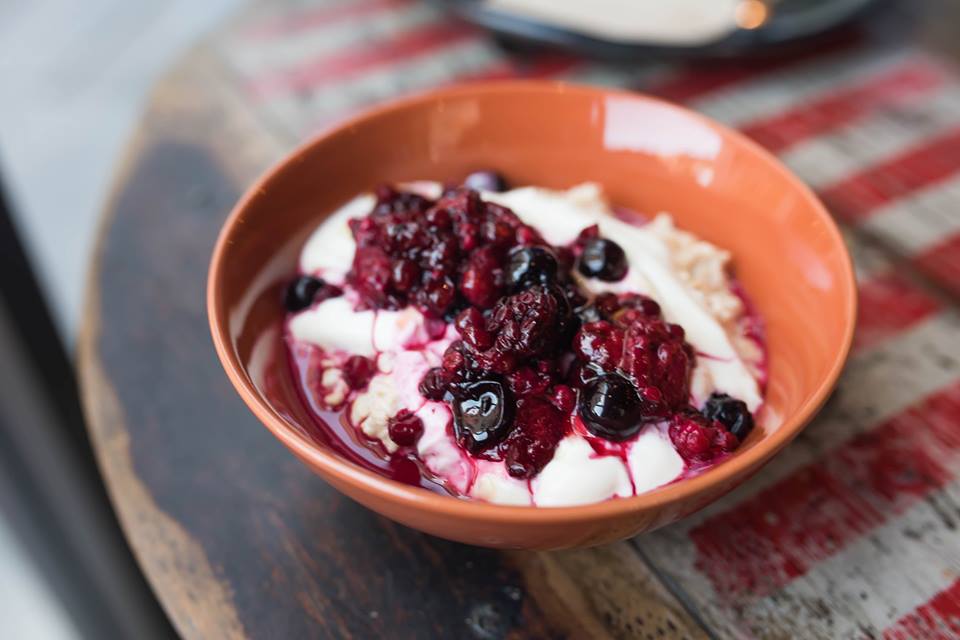 Now you can’t have a coffee without a tasty breakfast treat to match, right?! Right! Today I opted for the Felici Fig and Walnut Raisin Toast served with banana, mixed berries, ricotta and honey and Mr L chose the Felici Bircher Muesli served with natural Greek yoghurt and mixed berries. Both breakfast dishes were beautifully presented on large coloured plates that made the red berries on top stand out.