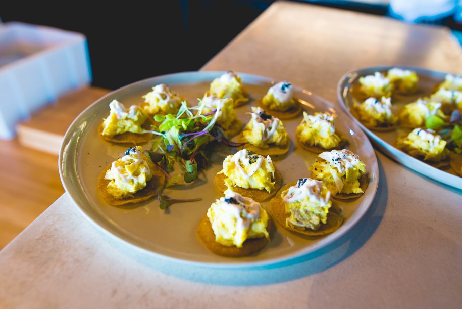 The canapés served at 2KW began with turmeric-baked snapper with dirty lime yoghurt on a crispy wonton. The snapper with its fine texture and mild white meat was a perfect textural contrast to the crispy fried wonton beneath, which held up excellently to the creamy mixture. 2KW’s Restaurant Manager Brett Lanthois explained to us how the dirty lime added an earthy depth of flavour to the fish instead of a crisp freshness that you would expect from a citrus such as lime.
