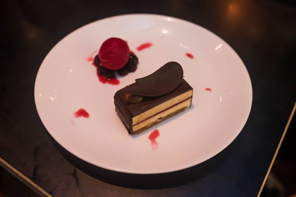 Of course, no meal is complete without dessert. First up was the Gateau Au Chocolat which consisted of a chocolate mousse layer cake with raspberry jelly and dark chocolate ganache. The other component of the dessert was the berry compote and raspberry sorbet. The layers of mousse were soft and creamy, and encased in a rich decadent chocolate. The sweetness of the raspberry jelly, when combined with the compote and sorbet, reminded me of eating a Cherry Ripe but without the coconut.