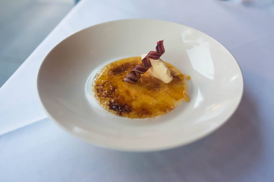 After much contemplation I decided on the Rhubarb Crème Brûlée with vanilla cream, rhubarb crisp and pear reduction for dessert. From the top the crème brûlée (French for ‘burnt cream’) looked simply like a thin caramelised layer, but on closer inspection there was a hidden compartment to the bowl. A fancy and unique way to present a dessert staple of many restaurants. Now is there anything more satisfying than the moment when you crack though the brittle top of a crème brûlée to expose the delicious custard below… no, I think not! Tap, tap, tap… crack went the spoon and through oozed the concealed custard below. The caramelised top was a picture-perfect golden hue and tasted just like toffee. The custard base was one of the smoothest and creamiest I have ever tasted, almost reminiscent of vanilla ice cream. If you dug a little deeper you found the stewed rhubarb. The tartness of the rhubarb cut thought the richness of the crème brûlée; a perfect balance of flavours. This dessert was faultlessly executed and so delectable that I wanted to lick the plate clean!