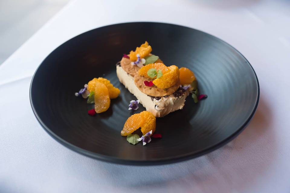 On the basis of intrigue Mr L chose the Organic Honey Parfait with raw cacao nib and textures of mandarin and filo pastry. This dessert was also beautifully presented with its pops of colour against the black plate on which it was served. The parfait was delicate and creamy and had a lovely subtle honey flavour. The creaminess was balanced by the natural bitterness of the cacao nibs, along with the sweetness of mandarin. The mandarin segments came in two ways, fresh and dried; the latter reminiscent of a Cheezel consistency. Perfectly executed juxtaposition! The crispy filo pastry circles added yet another textural element to the dish. The Organic Honey Parfait was a fine example of a dish that was equally appealing to the eye and palate, or put simply, art on a plate!